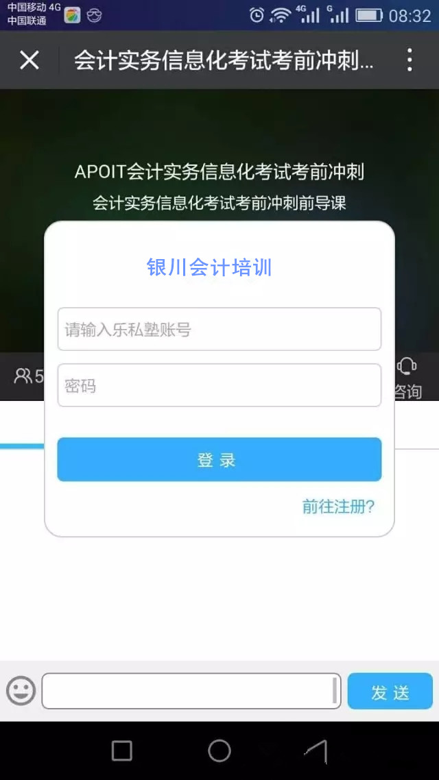 【會(huì)計(jì)實(shí)務(wù)信息化考試考前沖刺千人直播-免費(fèi),免費(fèi),免費(fèi)!】第二季度的考試馬上就要開始了,銀川會(huì)計(jì)培訓(xùn)中心作為寧夏信息化證官方指定考點(diǎn),將在5月25日-5月30日,19:30-21:30為大家?guī)砬藭?huì)計(jì)實(shí)務(wù)信息化考試免費(fèi)直播。有意者馬上私信我!精彩內(nèi)容不容錯(cuò)過~觀看請(qǐng)點(diǎn)擊(請(qǐng)?zhí)崆白?cè)):http://t.cn/RaDK8iF(手機(jī)微信登錄)。 13309598437?0951 6028943