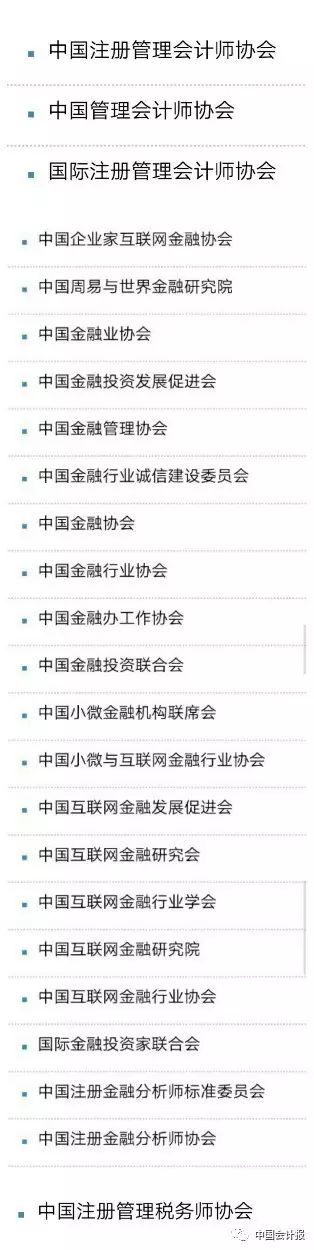 對(duì)于會(huì)計(jì)朋友們關(guān)心的財(cái)會(huì)、稅務(wù)、金融和互聯(lián)網(wǎng)等領(lǐng)域,小編從民政部截至目前公布的“離岸社團(tuán)”“山寨社團(tuán)”名單中找到了這些: